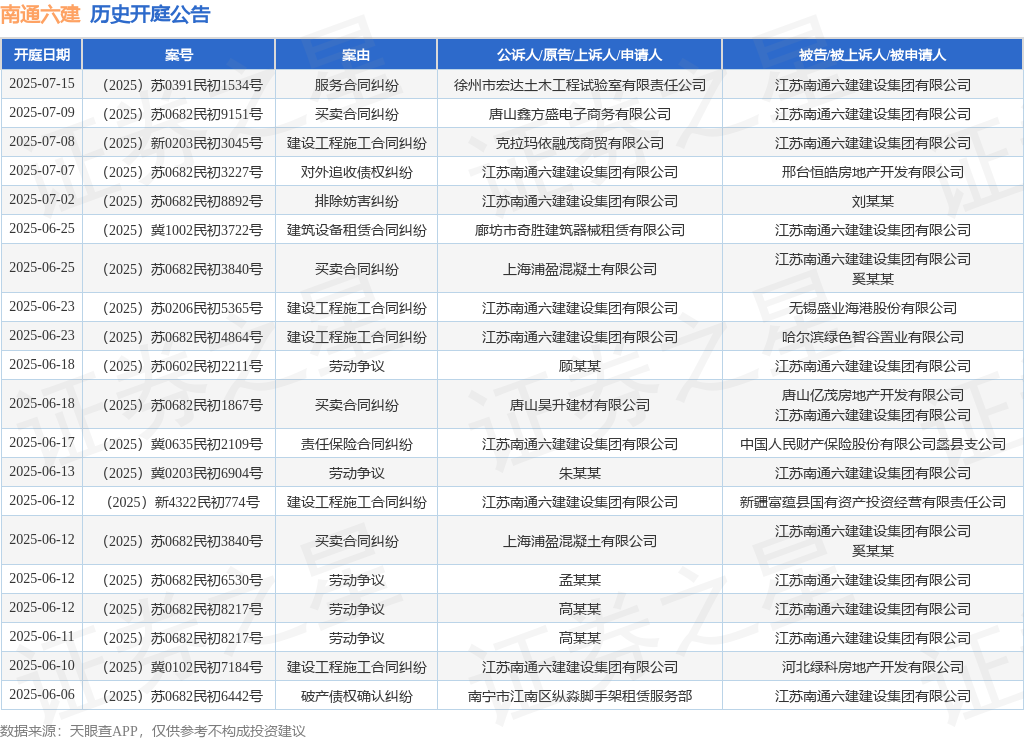 本站消息,根据天眼查APP显示,近日公布了一则江苏南通六建建设集团有限公司作为原告/上诉人的开庭公告,详细内容如下: